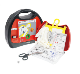 *7、帶機蓋,開蓋自動開機;機蓋內標配急救包(含:一次性電極貼片、手套、口對口呼吸膜、安全剪刀、剃毛刀);