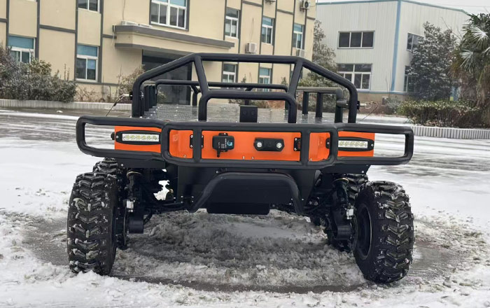 伴隨保障機(jī)器人搭載8×8 全輪驅(qū)動(dòng)底盤(pán),配備獨(dú)立懸架與大花紋越野輪胎,可輕松應(yīng)對(duì)山地、泥濘、荒漠、雪地、叢林等復(fù)雜路況,支持原地旋轉(zhuǎn)功能,最小轉(zhuǎn)彎半徑趨近于零,在狹窄巷道、林間小道、戰(zhàn)場(chǎng)掩體等受限空間內(nèi)也能靈活調(diào)整位置,精準(zhǔn)跟隨保障目標(biāo),避免因地形限制掉隊(duì)。