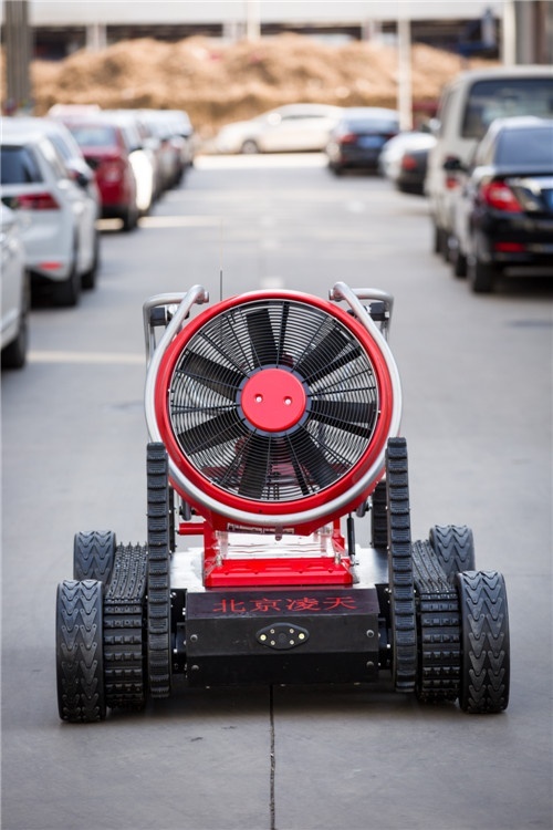 消防排煙偵察機器人采用履帶+擺臂+輪式的底盤設計,裝配大功率水驅動排煙機。水霧噴射裝置,形成霧化效果。消防排煙機器人在救援當中可深入災害現場執行排煙降塵、冷卻、送風、降低熱輻射等多種作業。