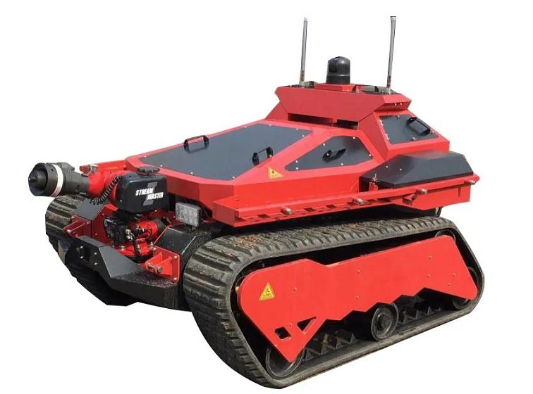 消防滅火偵查機器人,是代替消防員近攻火災現場的理想設備。其功用包括:降塵降溫,水/泡沫滅火噴射,火場視頻信息/環境偵查等實時觀測;它運動靈活,可原地轉向,最大爬坡度 62.5%。無線遙控400m~1km以上,遠距離遙控操作確保消防員的人身安全,并達到最佳的安全作業效果。