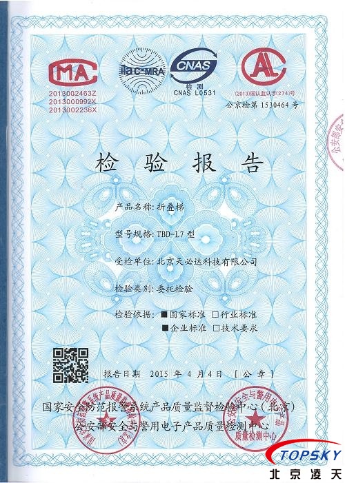 本產品通過公安部安全與電子產品檢測檢驗中心檢測,檢測報告編號:公京檢第1530464號。