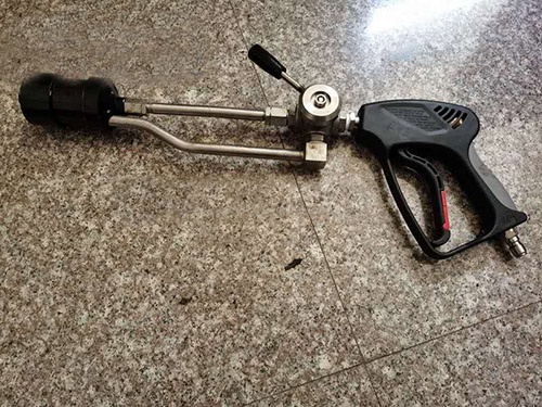 噴槍連接的軟管采用耐壓大于額定壓力1.5倍以上的編織橡膠軟管;