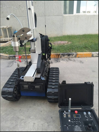 主要是用來處理戰術破拆式機器人,也可用于遠程遙控偵察人難以達到的地形的一種機器人。機器人配備十字滑臺,靈活調動工具的工作位置,可加載手持式切割機,還可以加載獨立電動液壓工具其包括:微型開門器、微型擴張器、微型剪切器之間可以靈活更換,底盤采用履帶結構,能適應各種地形快速作戰部署。 |
