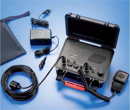采用無線超聲波原理實現了水下人員之間以及與水面人員的通話,具有無線通話、語音清晰、小巧輕便易用的特點。整套設備由1個水面控制臺、8個帶二級的全面罩、8個水下對講機組成。配備詳細的中文說明書。水下對講機有兩個工作頻率,全面罩采用大視野設計,適合各種臉型的人,并帶有排耳壓裝置。全面罩:專利波紋管雙“S”,“彈簧輪廓”,邊緣,全視野面罩,保證更大的密封性。獨有的空氣循環系統,保證面罩在任何時候不會起霧。透明聚碳酸酯護目鏡,兩面均涂有硅氧烷樹脂,以提高耐擦傷性和耐化學性,護目鏡可見光率>92%。頭帶至于面罩上,易于抓握,快速旋轉帶扣系統,可在水上水下快速、單手脫戴。內置二級減壓閥,,預留通訊接口,可以與原廠生產的通訊系統和各種配件配合使用。面罩的總重量只有860g,正浮力可達400g,穿戴輕便舒適。高超的表面處理工藝可以在各種惡劣環境下使用,厚粘合面30-45mm,是傳統面罩的兩倍,由高純度硅膠制成,帶外部排耳壓裝置。水下對講機:對講機無需從面罩上取下,可在直接在面罩內折疊。采用無線超聲波工作原理;工作范圍可達200m,深40m(平靜海面); 雙供電系統,可充電,也可更換電池,耐用總時間30h;入水自動啟動,低電壓下耐用1h,電壓低于7.5VDc時,每30s發出一次警報信號。一鍵通傳輸,自動接收,頻率32.768KHz或41KHz,自動控制噪聲,DAT模式30s傳輸,20s接收。按鍵通話(PTT)、靜噪,帶電量提示,紅色閃爍LED燈和警報聲音提醒等控制功能。兼容同品牌所有裝置或者其他競爭品牌同頻率設備。重量370g。水面工作站:采用無線超聲波工作原理;水面設備,工作范圍可達1000m;通過通訊線路/開關激活。可充電式6Vac鉛酸電池,耐用總時間48h;低電壓下耐用1.5h,電壓低于4.8Vac時,每30s發出一次警報信號。一鍵通傳輸,自動接收,頻率32.768KHz或41KHz,自動控制噪聲,重量2.3kg。