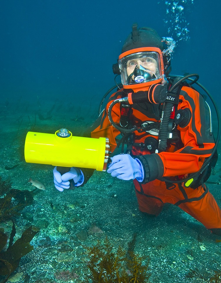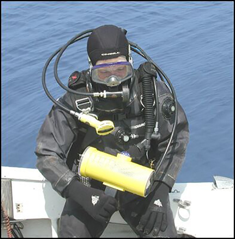 手持聲納設(shè)備為便攜式、組合式的聲納系統(tǒng),由聲吶發(fā)射器和聲吶接收器兩部分組成,可實現(xiàn)發(fā)射和接收的操作。聲吶發(fā)射器可為潛水員在水下定位水下物體。工作深度100m,頂部帶有指南針,方便在水下辨別方向, 整體為醒目的亮黃色,接收器帶有槍式握把,潛水員可單手操作接收器。