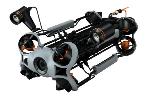 是一款工業級水下機器人。采用8推進器全矢量布局,360度全方位移動,最大航速3節、深度200米、最大水平半徑400米。