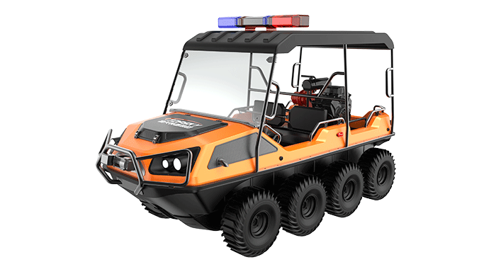在復(fù)雜惡劣的地形條件和自然環(huán)境下,森林消防水陸兩棲全地形車可以讓搜救隊員和攜帶的救援裝備快速到達(dá)救援現(xiàn)場,減少徒步帶來提供消耗,完成最后一公里最好五分鐘緊急救援任務(wù)。森林消防水陸兩棲全地形車可配備點到絞盤、救援擔(dān)架組件、探照燈、警示燈、警報器、脫鉤、破拆工具等裝備, 給救援團(tuán)隊提供救援保障,更安全的解救傷員和疏散群眾。