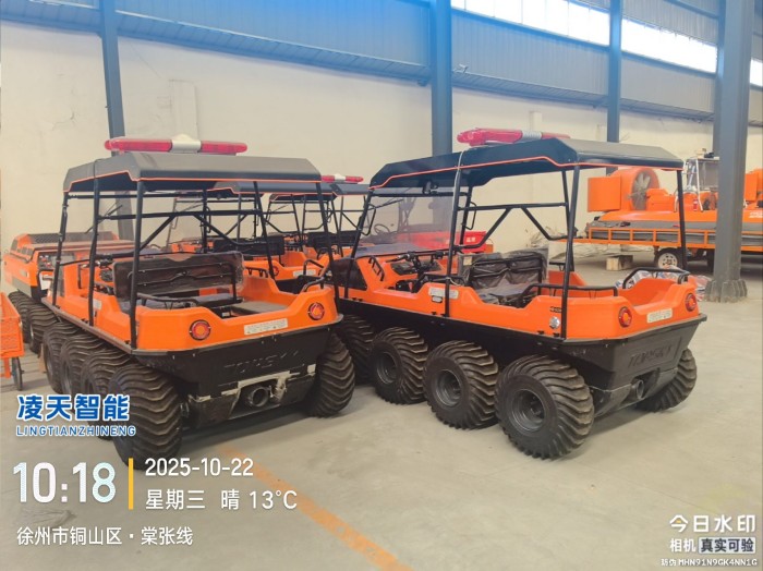 全地形:上山下水,爬坡過坎,泥潭沼澤,8×8低壓輪胎適合所有救援場景,最大可以乘坐6人。