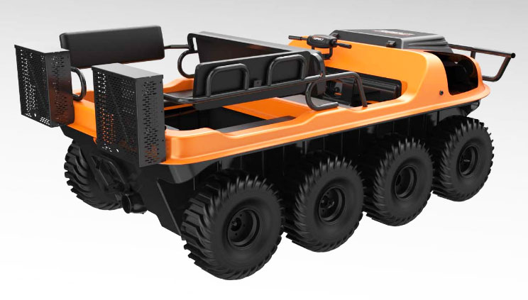 采用 8×8 輪式底盤,水陸兩棲,可全地形行駛。