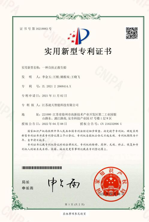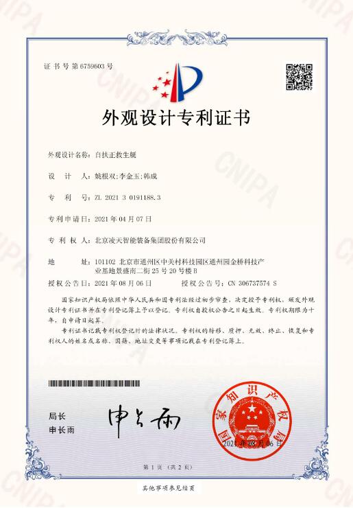 1. ★自扶正功能:將自扶正激流救生艇閑傾90°后手動釋放,能自動恢復(fù)到正常狀態(tài),扶正后人員安全,扶正后不影響整艇的任何功能。