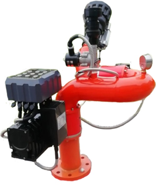 當本產品配合消防車和消防機器人使用時,可以開啟自噴淋裝置,保護其他設備不受火場高溫的損壞,使得消防車和消防機器人更加深入火場,為快速滅火提供有力的保障。