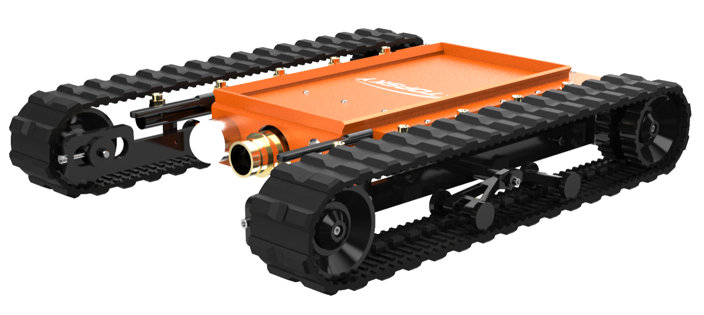 主要功能:履帶式防爆機器人底盤采用鋰電池電源作為動力源,使用無線遙控的方式遠距離操控,可搭載形式多樣,原地旋轉設計可使得運更靈活。