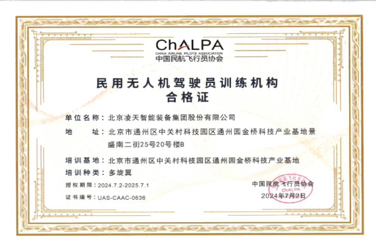 資格類 | 民用無人機駕駛員訓練機構合格證(北京凌天) | |
