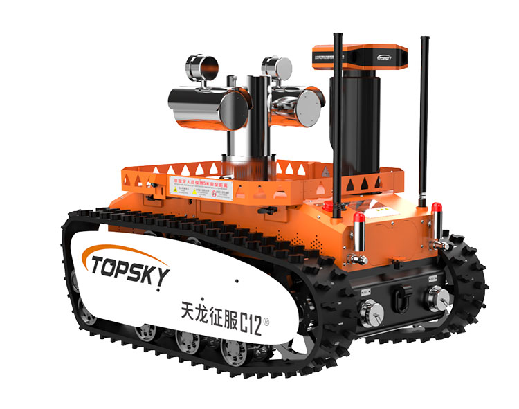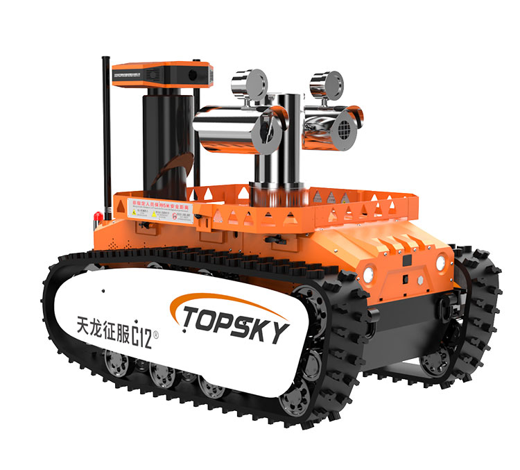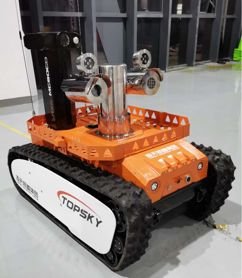 主要功能:履帶式防爆機器人底盤采用鋰電池電源作為動力源,使用無線遙控的方式遠距離操控,可搭載形式多樣,原地旋轉設計可使得運更靈活;具備音視頻偵察、有毒有害氣體偵察、災區環境偵察功能,對提高救援安全性、減少人員傷亡具有重要意義。