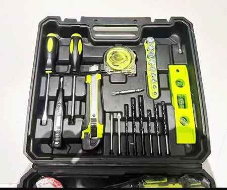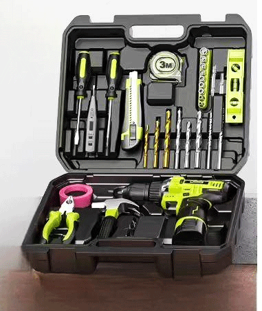 這款工具箱集多種實用工具于一身,包含尖嘴鉗、手電鉆等。尖嘴鉗能在狹小空間靈活操作,用于夾捏、剪切小物件;手電鉆可輕松應對木材、塑料等鉆孔作業(yè)。此外還有其他常用工具,能滿足日常家裝維修、簡易手工制作等多樣需求 。