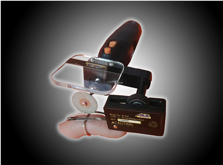 指環切割器是便攜式戒指指環剪切破除輕型破拆工具裝置,采用電動、手動等多種工作方式破拆摘除戒指環。操作簡單安全快捷,不會傷到手指,可切割不銹鋼、鐵、金、銀、銅、鋁、玉、瓷、玻璃及復合材料等。